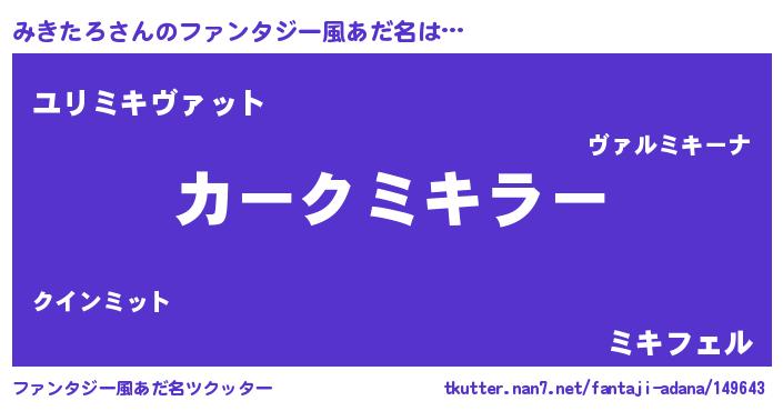 | 欧米人風あだ名 | 『みきたろ・ステッグマイヤー』 |