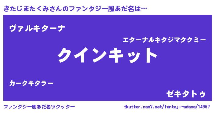 | 男性向けラノベタイトル風あだ名 | 『ノーゲーム・ノーキタジマタクミ』 |