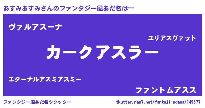 | 欧米人風あだ名 | 『あすみあすみ・ステッグマイヤー』 |