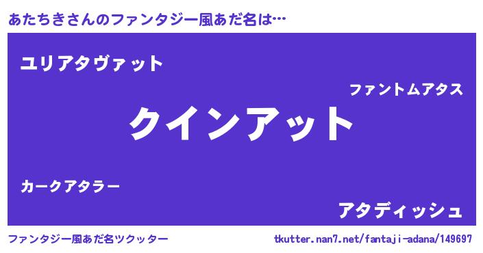 | ヘコむあだ名 | 『あたちき(笑)』『あたぷりん』 |