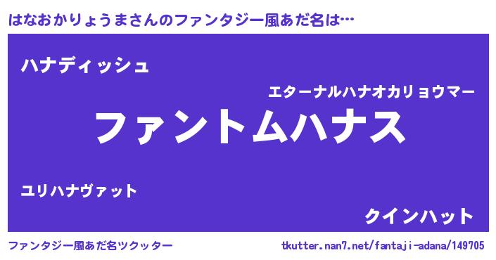 | ヘコむあだ名 | 『はなぷりん』『はなおかりょうま(震え声)』 |