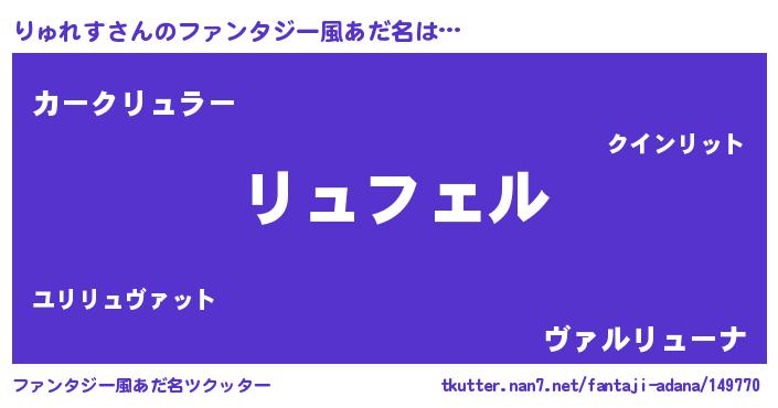 | 女子向けラノベタイトル風あだ名 | 『りゅれす姫と円卓の騎士』 |
