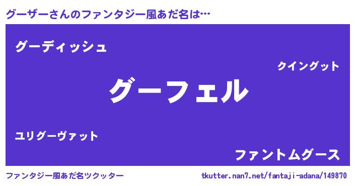 | 意味不明あだ名 | 『ペロリングーザー』『永久保存グーザー』 |