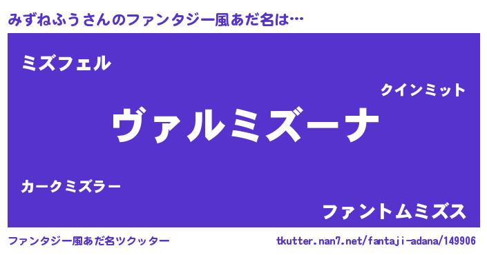 | 男性向けラノベタイトル風あだ名 | 『魔弾の王とみずねふう』 |