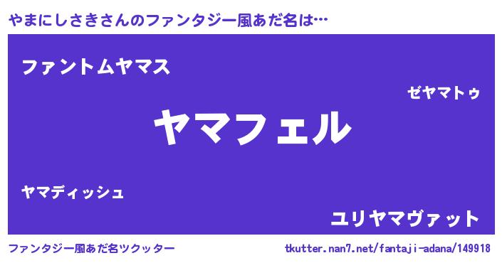 | ヒーロー風カッコイイあだ名 | 『スーパーヤマニシサキ』『天弓騎士ヤマ』 |