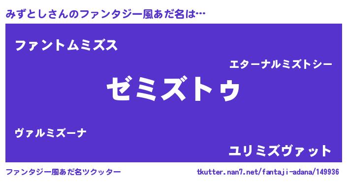| ポケモン風あだ名 | 『ミズセウス』『ミズゴンZ』 |