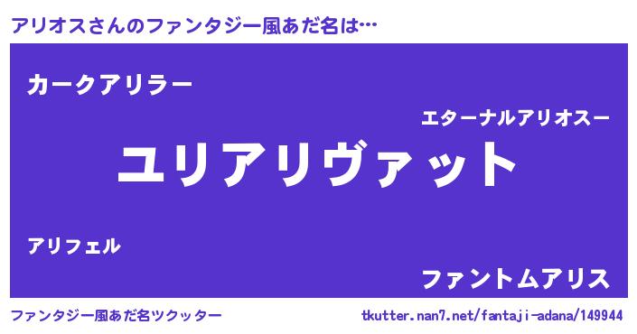 | 女子向けラノベタイトル風あだ名 | 『アリオスの玉の輿計画!』 |