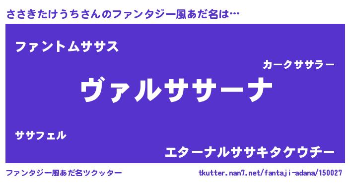 | 男性向けラノベタイトル風あだ名 | 『魔弾の王とささきたけうち』 |