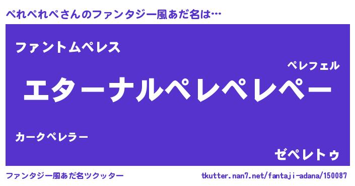 | 意味不明あだ名 | 『ぺれぺれぺフォーエバー』 |