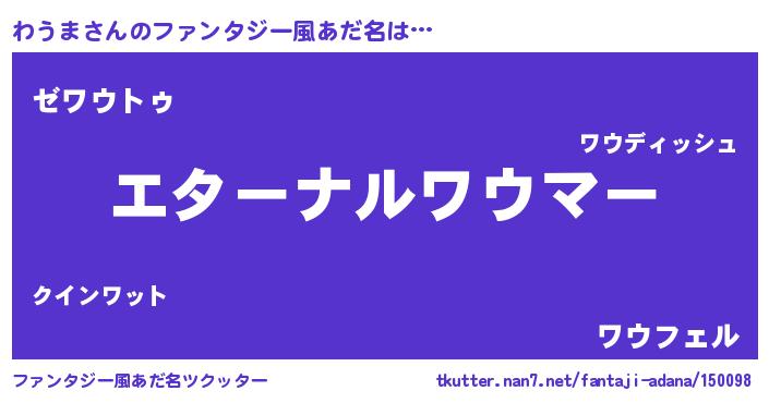 | 意味不明あだ名 | 『わうまフォーエバー』『自称わうま』 |