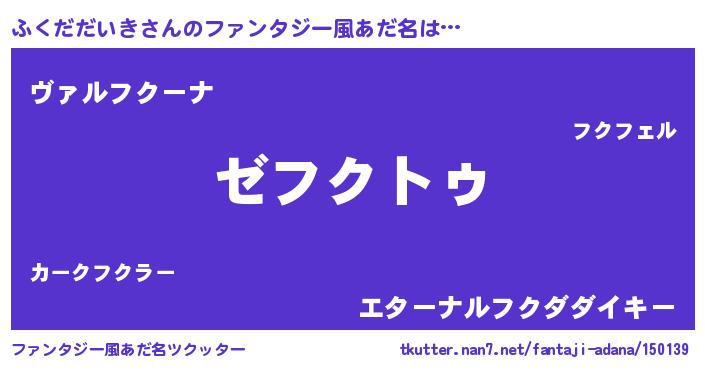 | 男性向けラノベタイトル風あだ名 | 『魔法科高校のふくだだいき』 |
