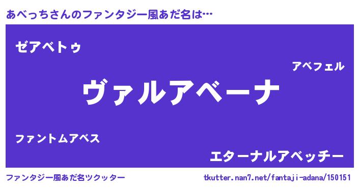 | 女子向けラノベタイトル風あだ名 | 『乙女ゲームの破滅フラグしかない悪役あべっちに転生してしまった…』 |