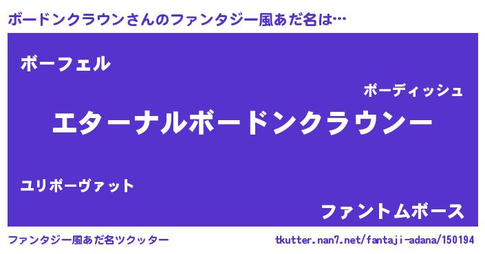 | 欧米人風あだ名 | 『ボードンクラウンクリステル』 |