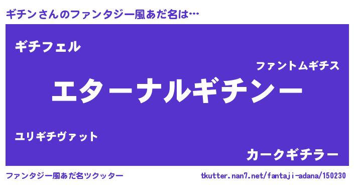 | 欧米人風あだ名 | 『ギチンクリステル』『マイケルギチン』 |