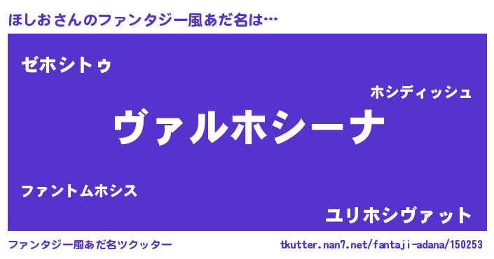 | 男性向けラノベタイトル風あだ名 | 『魔弾の王とほしお』『ホシオスレイヤー』 |
