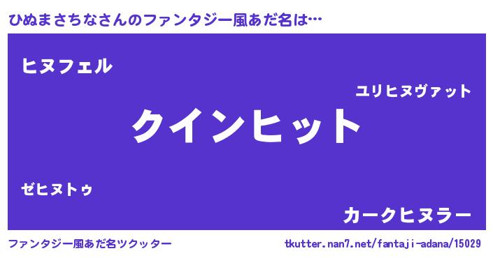 | 女子向けラノベタイトル風あだ名 | 『ひぬまさちな恋絵巻』 |