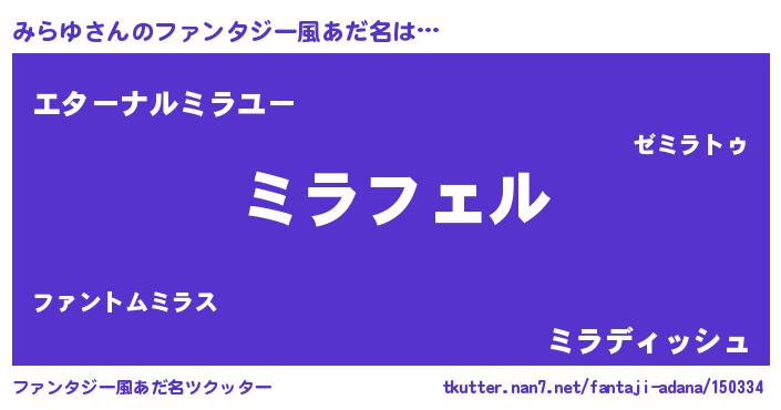 | 意味不明あだ名 | 『ペロリンみらゆ』『みらゆフォーエバー』 |