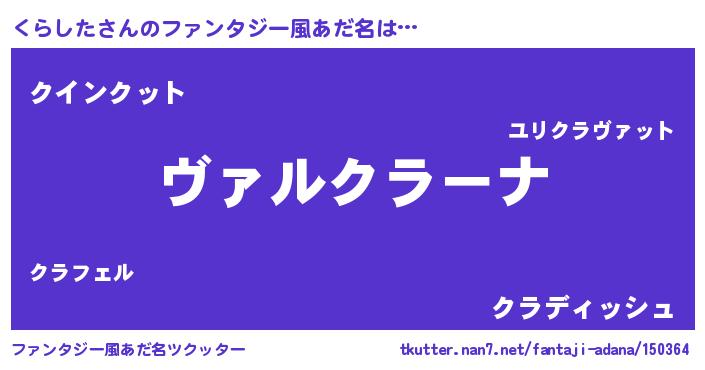 | 男性向けラノベタイトル風あだ名 | 『この素晴らしい世界にくらしたを!』 |
