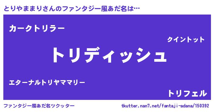 | ヒーロー風カッコイイあだ名 | 『ネオトリヤママリ』『黄金騎士トリ』 |