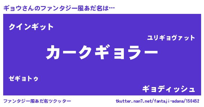 | ヒーロー風カッコイイあだ名 | 『天空の使者ギョウ』『ネオギョウ』 |