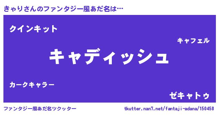 | 女子向けラノベタイトル風あだ名 | 『きゃりの契約王妃』 |
