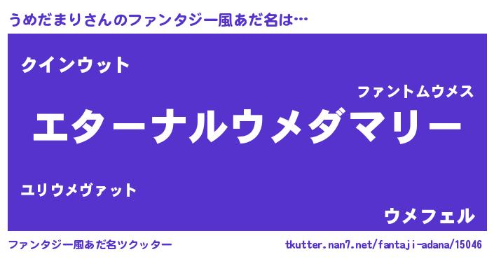 | 意味不明あだ名 | 『うめだまりフォーエバー』 |