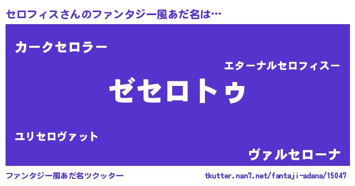 | 男性向けラノベタイトル風あだ名 | 『Re:セロフィスから始める異世界生活』 |