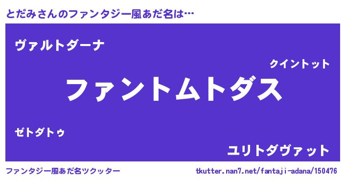 | 女子向けラノベタイトル風あだ名 | 『とだみは平凡を望む』 |