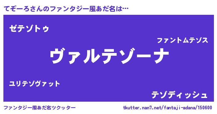 | ヒーロー風カッコイイあだ名 | 『仮面テゾダー』『最強戦士テゾーロ』 |