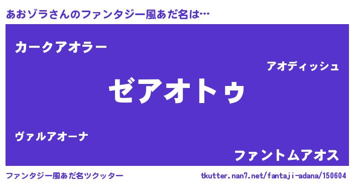 | 男性向けラノベタイトル風あだ名 | 『Re:あおゾラから始める異世界生活』 |