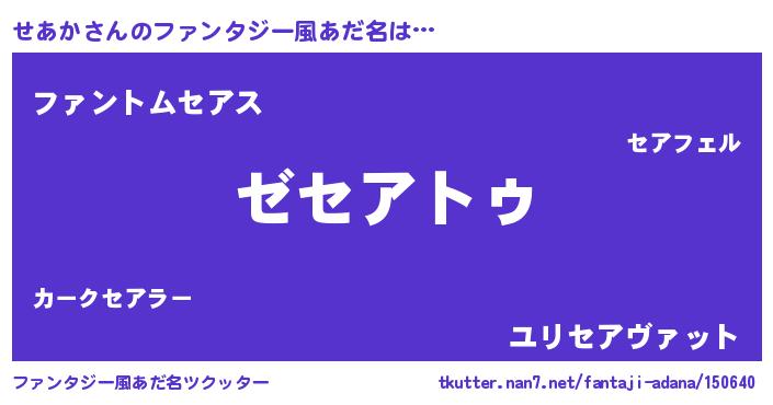 | ヒーロー風カッコイイあだ名 | 『ウルトラ戦士セアカ』『幻影騎士セア』 |