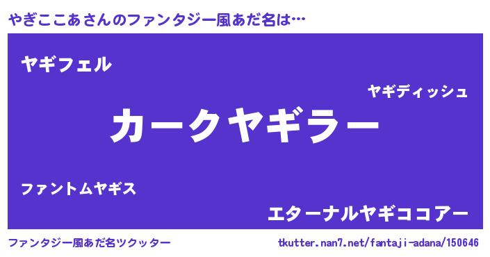 | 伝説のあだ名 | 『封印されし竜騎士やぎここあ』 |