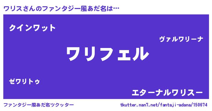 | 女子向けラノベタイトル風あだ名 | 『ワリス姫と円卓の騎士』『ワリス恋絵巻』 |