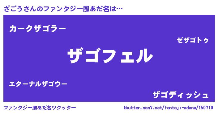 | ポケモン風あだ名 | 『ザゴゴンZ』『ザゴチュウ』 |
