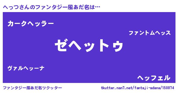 | 意味不明あだ名 | 『自称へっつ』『ペロリンへっつ』 |
