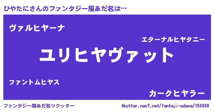 | ヒーロー風カッコイイあだ名 | 『仮面ヒヤダー』『ウルトラひやたにマン』 |