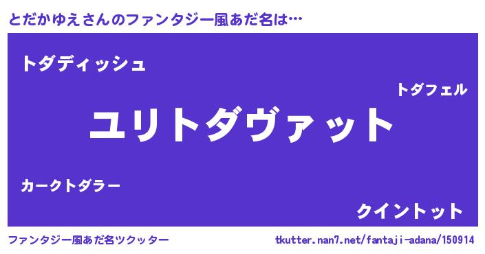 | ヒーロー風カッコイイあだ名 | 『ネオトダカユエ』『愛の使者とだかゆえ』 |