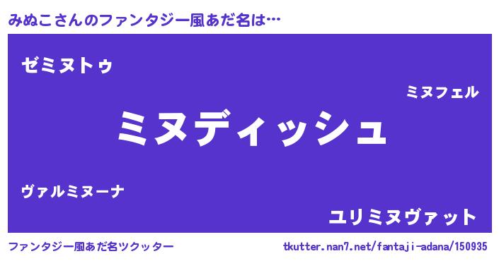 | ヘコむあだ名 | 『みぬこ(小並感)』『みぬにー』 |