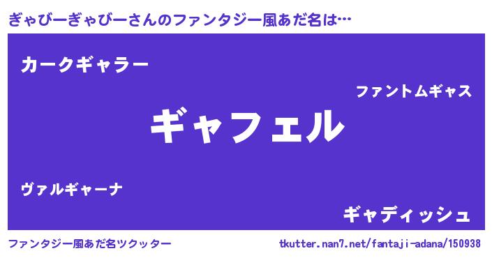 | 女子向けラノベタイトル風あだ名 | 『ぎゃびーぎゃびー姫と円卓の騎士』 |