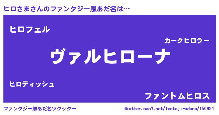 | ヒーロー風カッコイイあだ名 | 『仮面ヒロダー』『スーパーヒロサマ』 |