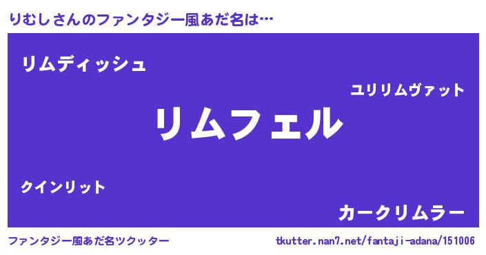| ヘコむあだ名 | 『りむふぇ~』『りむし(遠い目)』 |