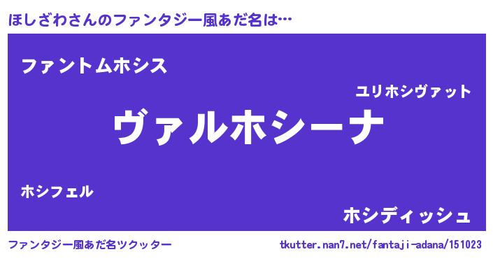 男性向けラノベタイトル風あだ名 | 『魔弾の王とほしざわ』『ほしざわの憂鬱』 |