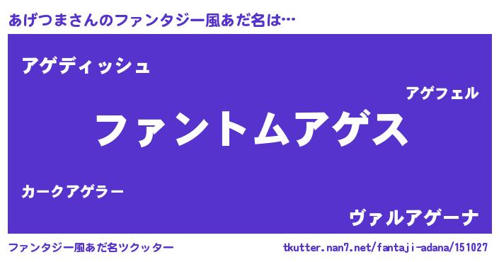| 意味不明あだ名 | 『とにかく怪しいあげつま』 |