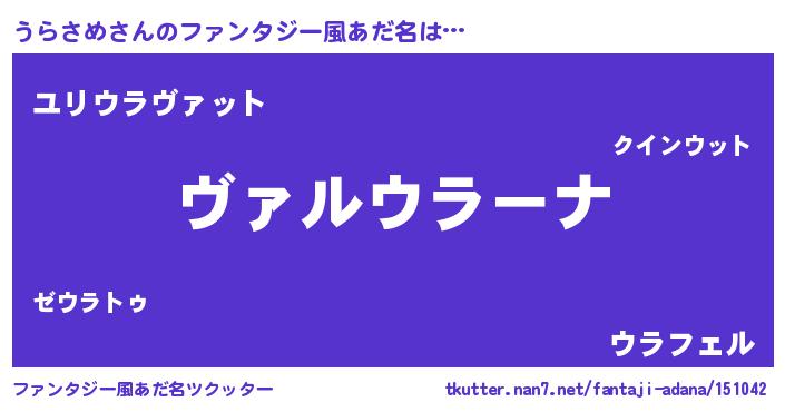 | 意味不明あだ名 | 『住所不定無職うらさめ(11歳)』 |