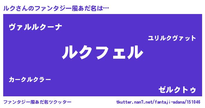 | ヘコむあだ名 | 『ルクにゅー』『酢こんぶ』『ルクお』 |