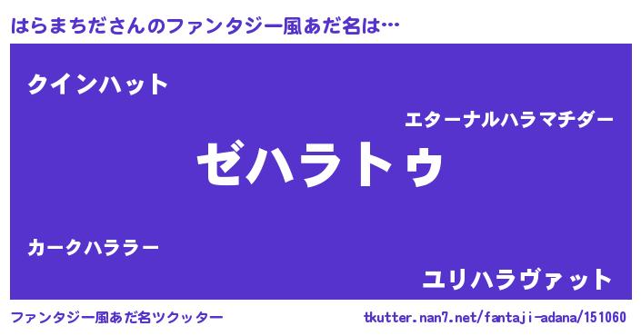 | 意味不明あだ名 | 『自称はらまちだ』『永久保存はらまちだ』 |