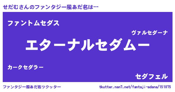 | 意味不明あだ名 | 『せだむフォーエバー』『ペロリンせだむ』 |