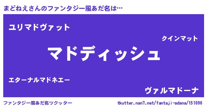 | 男性向けラノベタイトル風あだ名 | 『まどねえという概念が存在しない退屈な世界 』 |