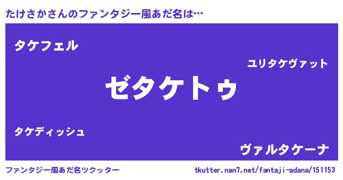 | ヘコむあだ名 | 『たけにー』『たけさか(震え声)』 |