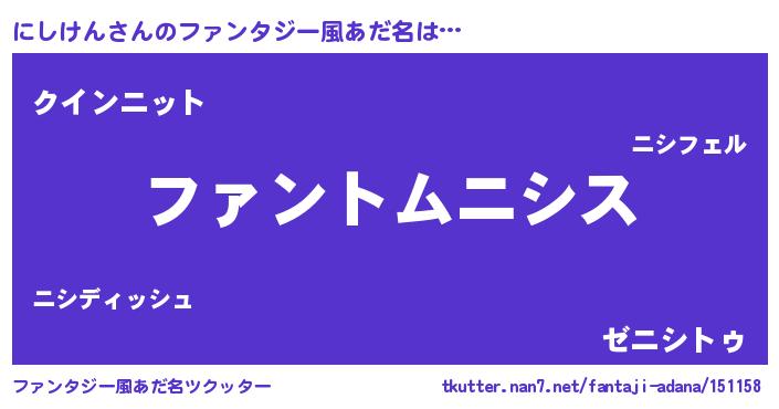 | ポケモン風あだ名 | 『ニシゴンZ』『ヒニシケン』 |